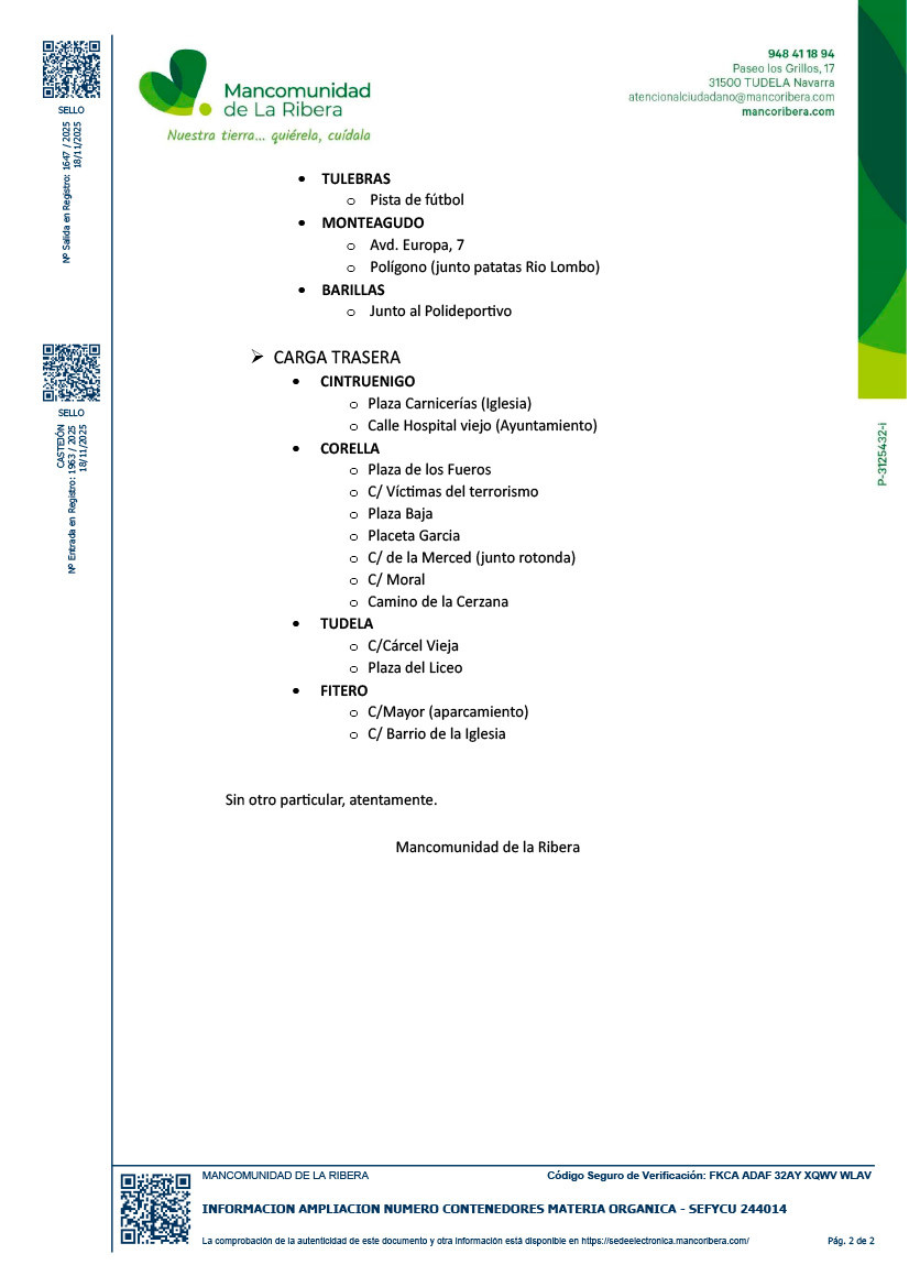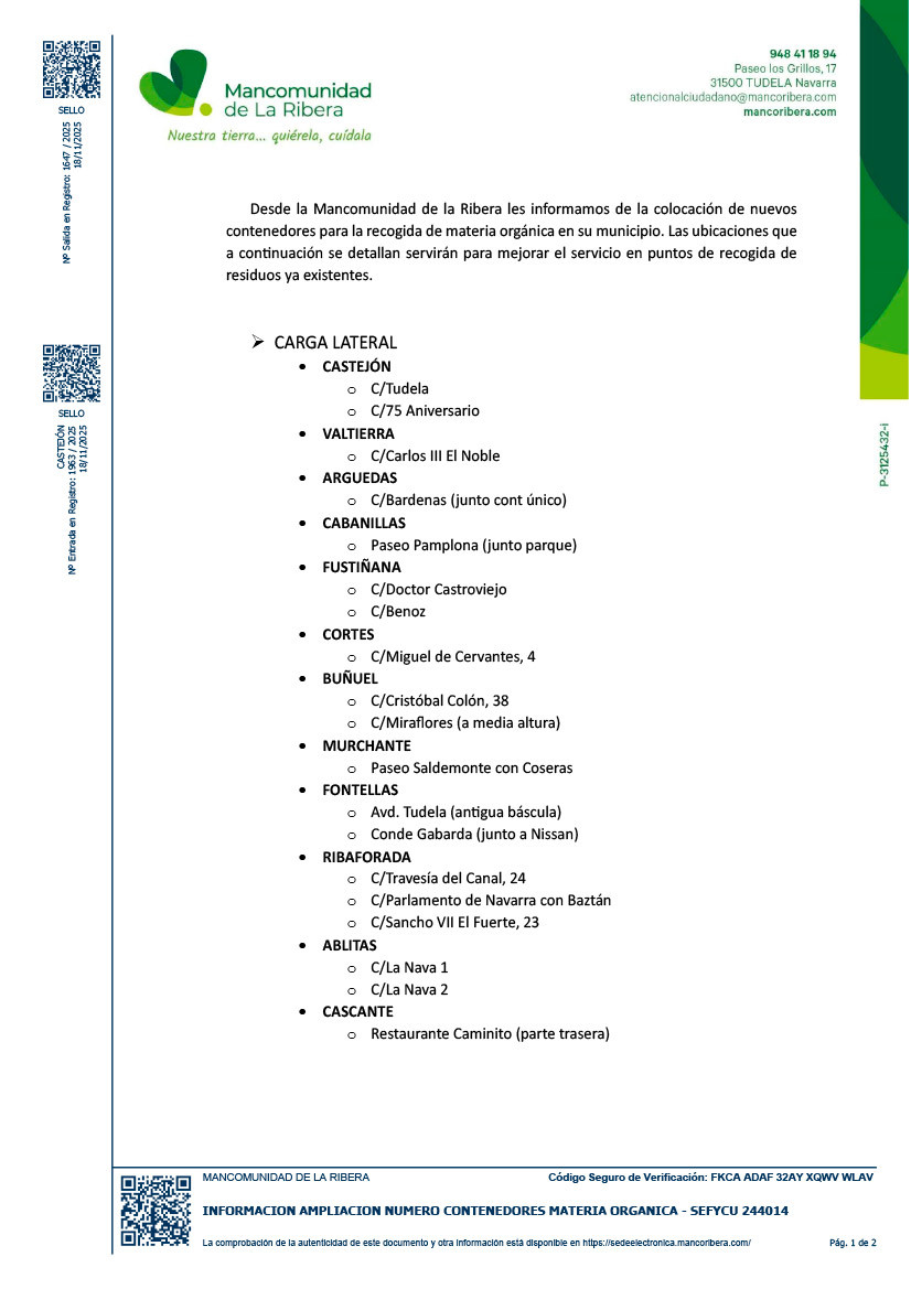 COLOCACIÓN DE NUEVOS CONTENEDORES DE RECOGIDA ORGÁNICA