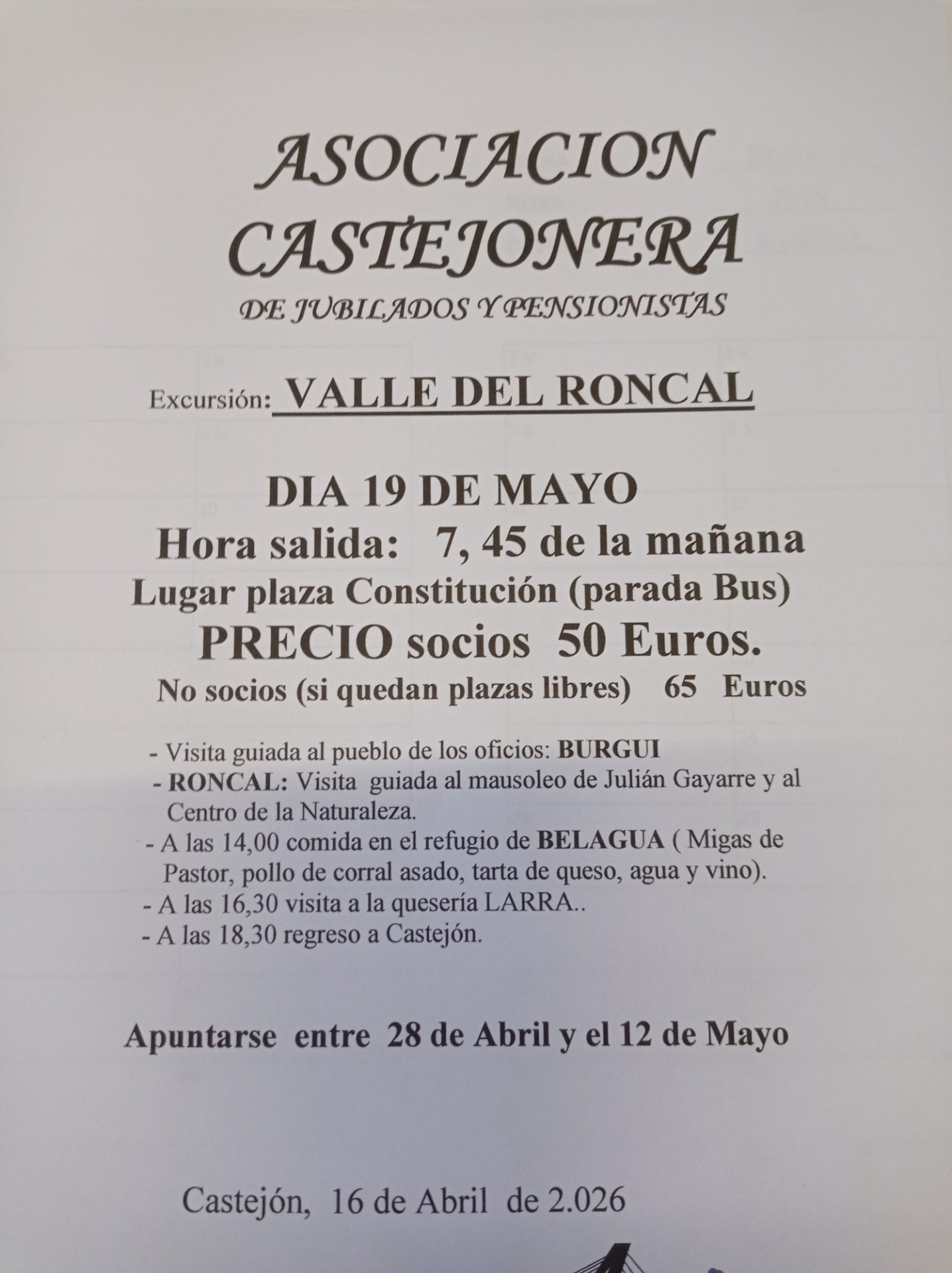 Inscripciones: del martes 28 de abril al martes 12 de mayo.